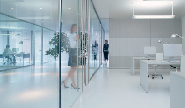 Противопожарные перегородки офисные из стекла могут изготавливаться как в полностью остекленном варианте, так и в частично остекленном исполнении. Основное предназначение таких конструкций — это разделение общего помещения на несколько отдельных рабочих зон. При этом преследуется несколько целей:
